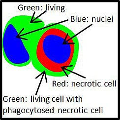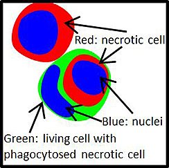 Die Elimination von geschädigten oder sterbenden Zellen ist sehr wichtig um die umliegenden Zellen oder den Organismus vor Schädigung zu bewahren. Phagozytose ist ein Mechanismus um solche Zellen zu eliminieren. Ein nicht so bekanntes Phänomen ist die Phagozytose durch nichtprofessionelle Phagozyten. Dies sind Zellen, die nicht zu den Entzündungszellen zählen aber dennoch phagozytieren können. In Tumoren wurden diese Ereignisse bisweilen beschrieben. 2007 beschrieb M. Overholtzer in einer bahnbrechenden Arbeit das Eindringen von Zellen in andere Zellen mit einer subsequenten Elimination der Zellen und nannte den Mechanismus Entosis (1). Wir konnten den umgekehrten Mechanismus beschreiben, dass nekrotische Zellen von lebenden Zellen phagozytiert und danach eliminiert werden (2). Wir verwenden dafür den neutralen Begriff des Cell-in-cell (CIC) Phänomens. Wir konnten zeigen, dass CIC eine wichtige prognostische Bedeutung hat die bedeutsamer sein kann als die Apoptose (3).