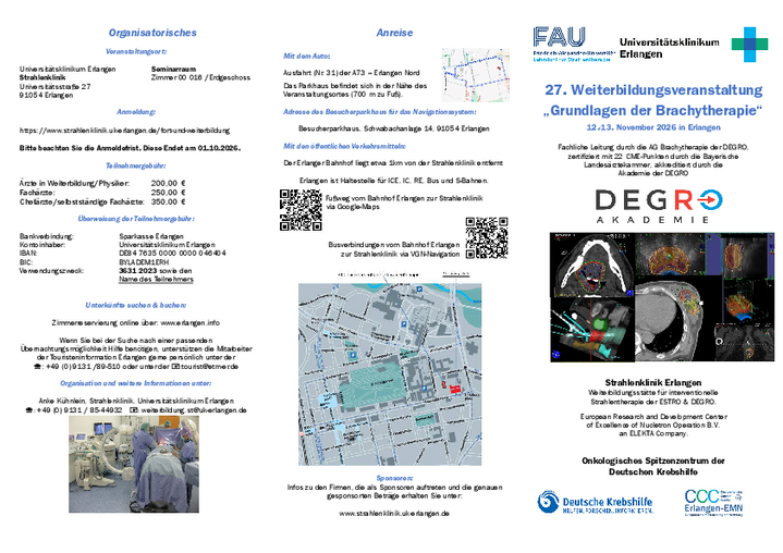 Anreise Organisatorisches Veranstaltungsort: Universitätsklinikum Erlangen Strahlenklinik Universitätsstraße 27 91054 Erlangen Seminarraum Zimmer 00 016 /Erdgeschoss Anmeldung:…